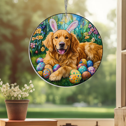 Golden Retriever Easter Egg Hunt Acrylic Suncatcher Window Hanging VTM1228NGT