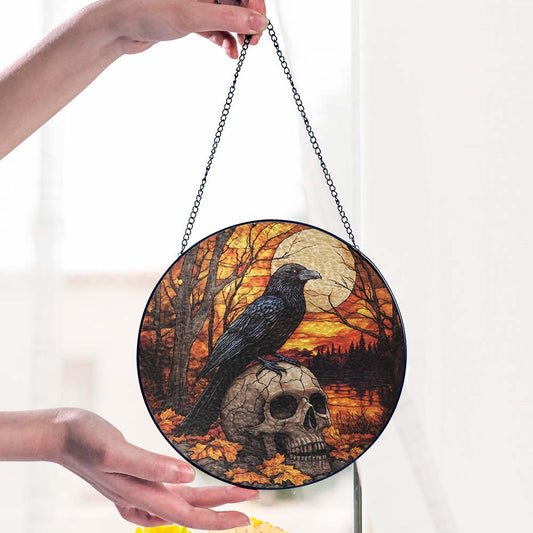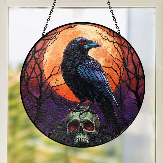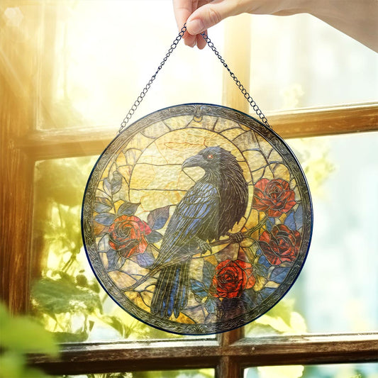 Halloween Raven Stained Glass Suncatcher - Gothic Crow Window Hanging for Home Decor