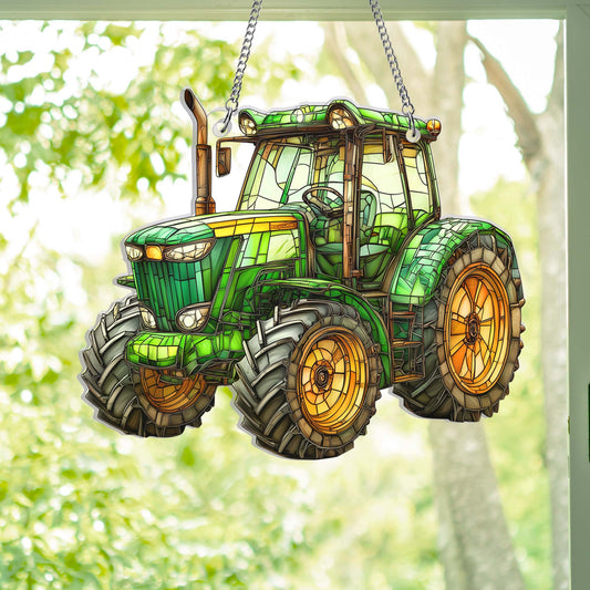 Green Tractor Farmer Acrylic Suncatcher Window Hanging MLN5209HVN