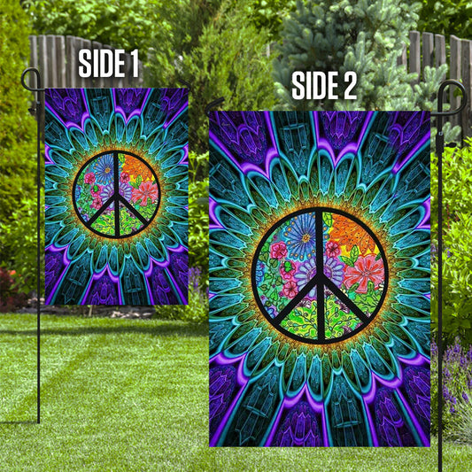 Hippie Flag - Peace Sign Canvas Flag with Boho Flower Print for Indoor Outdoor Decoration