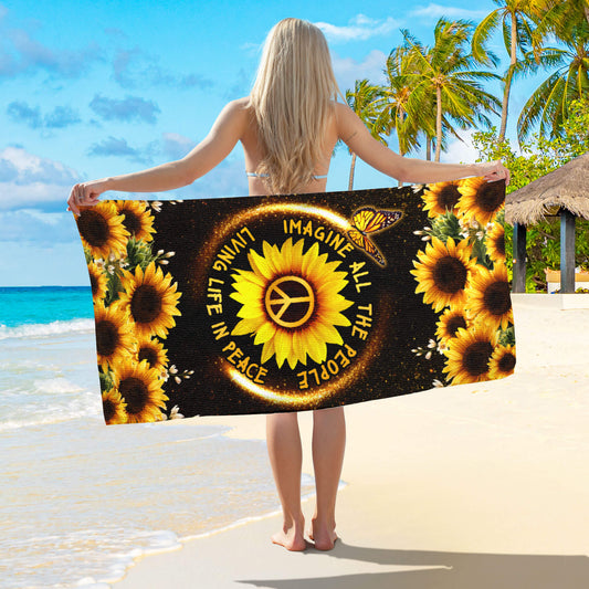 Hippie Sunflower. Imagine All The People Living Life In Peace Beach Towel TPT2730TNB