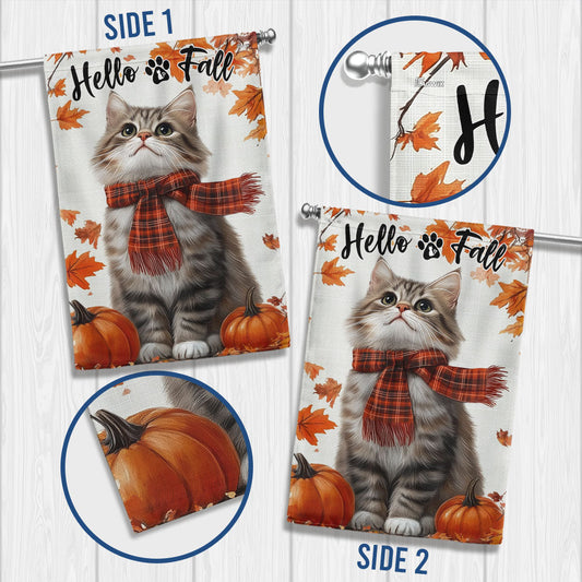 Hello Fall Cat Flag - Cute Thanksgiving Cat Garden Flag for Fall Outdoor Decor