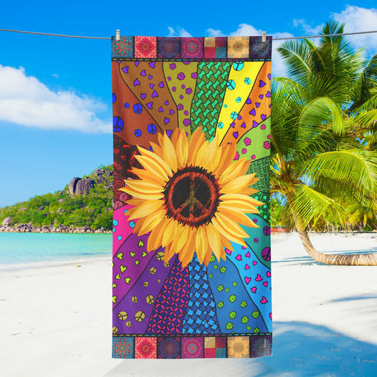 Hippie Peace Sign Sunflower Beach Towel TPT2728NTH