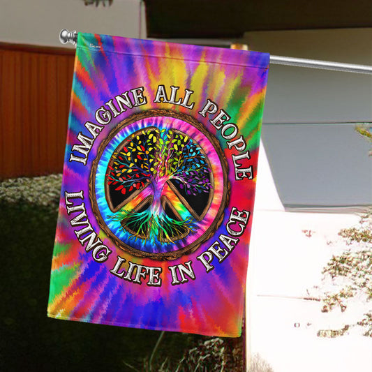Hippie Tie-Dye Peace Flag Set – Vibrant 3-Size Colorful Flag with Inspiring "Imagine Peace" Message, Durable Indoor & Outdoor Decor for Free Spirits and Garden Lovers