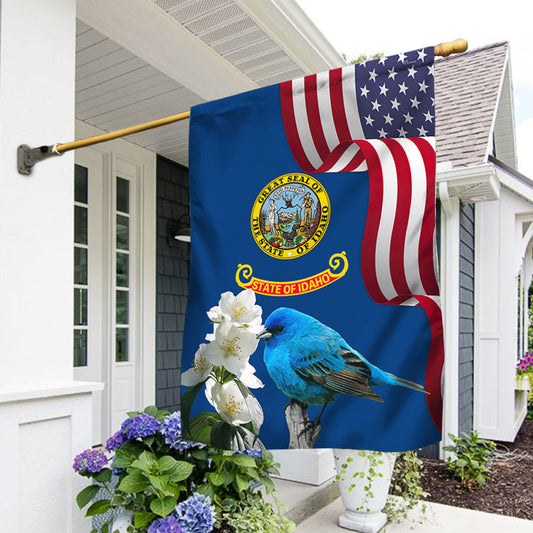 Idaho State with Mountain Bluebird and Syringa Flower American Flag TPT775Fv9