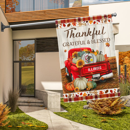 Illinois State Thankful Grateful And Blessed Pumpkins Thanksgiving Fall Illinois Flag TPT2167Fv1