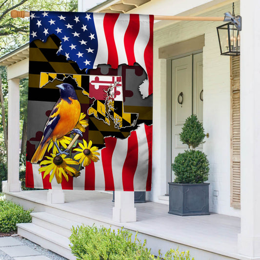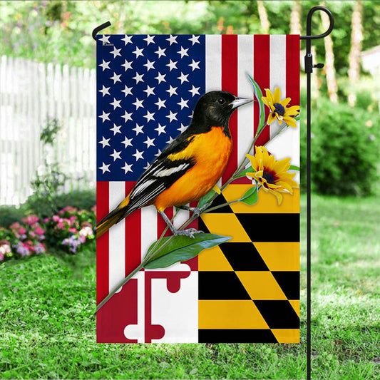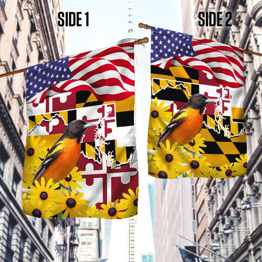 Maryland Flag Black-eyed Susan Flower and Baltimore Oriole Bird Flag TPT775Fv6