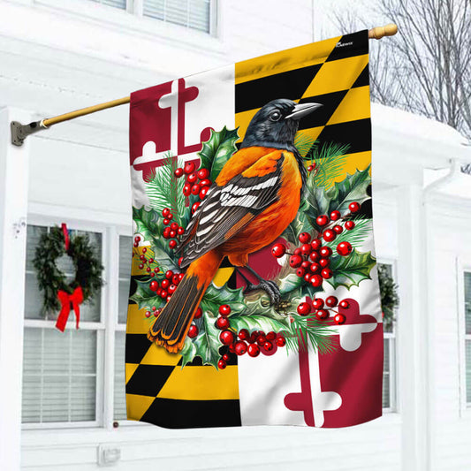 Maryland Christmas Baltimore Oriole Bird and Christmas Wreath Flag MLN2036F