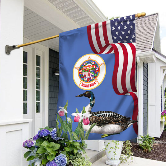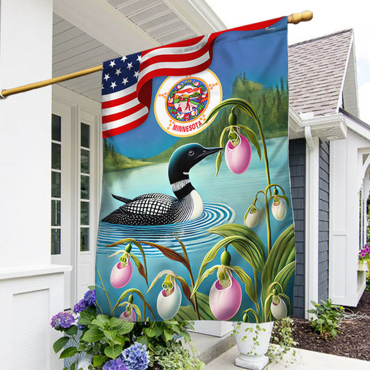 Minnesota State Lady's Slipper Flower and Loon American Flag MLN3894F