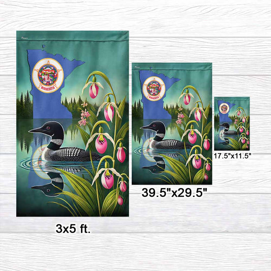 Minnesota State Lady's Slipper Flower and Loon Flag MLN1141Fv42