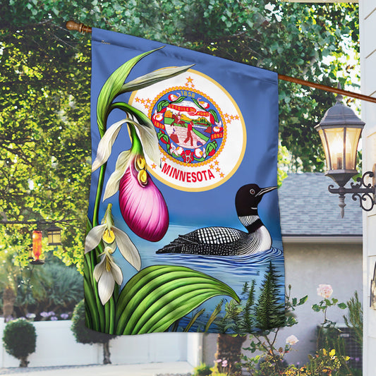 Minnesota State Lady's Slipper Flower and Loon Flag MLN3795F