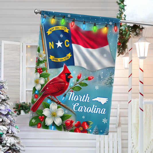 North Carolina State Christmas Cardinal and Dogwood Flower Flag MLN4303F