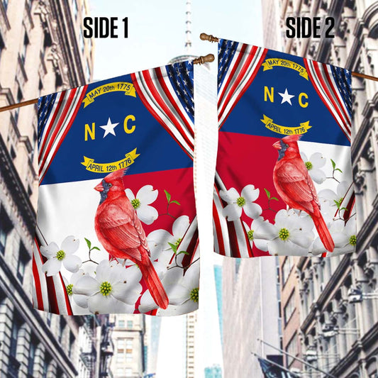 North Carolina Flag With Cardinal and Flowering Dogwood Flag TPT812Fv1