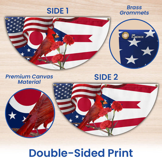 Ohio State Cardinal and Scarlet Carnation Flower Non-Pleated Fan Flag MLN3444FL