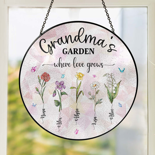 Personalized Grandma's Garden Stained Glass Suncatcher, Birth Month Flowers Stained Glass, Mothers Day Gifts For Nana Custom Garden Decor
