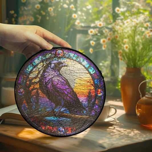 Raven Stained Glass Suncatcher - Spiritual Gothic Window Hanging for Home Decor