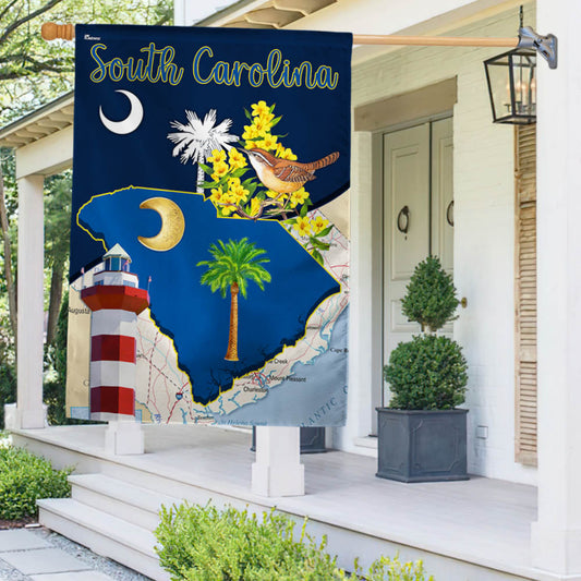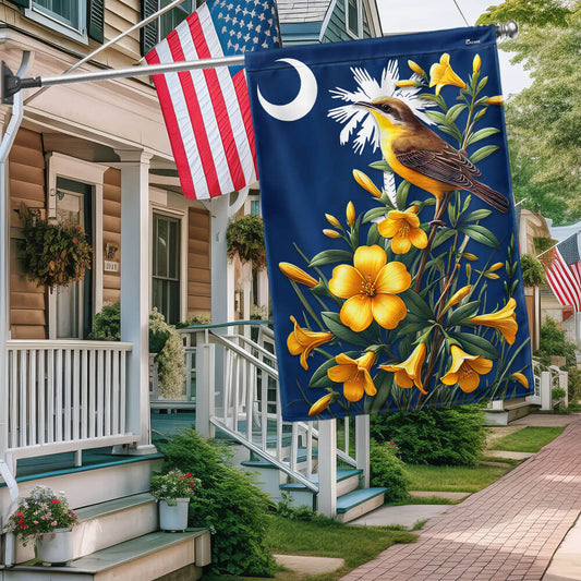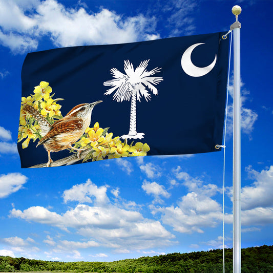 South Carolina Flag Carolina Wren Bird and Yellow Jessamine Flower Flag MLN3193F