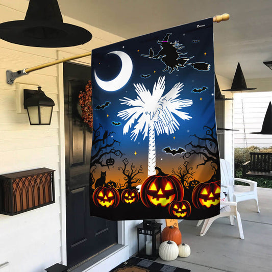 South Carolina Halloween Palm Tree and Witchcraft Pumpkins Halloween Flag MLN3904F
