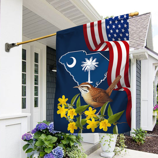 South Carolina With Carolina Wren Bird and Yellow Jessamine Flower Flag TPT775Fv2