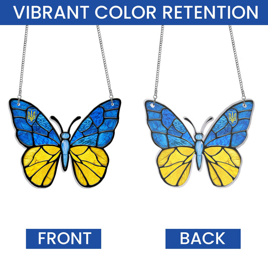 Stand With Ukraine Butterfly Blue Yellow Acrylic Suncatcher Hanging Sign TQN4932LTH