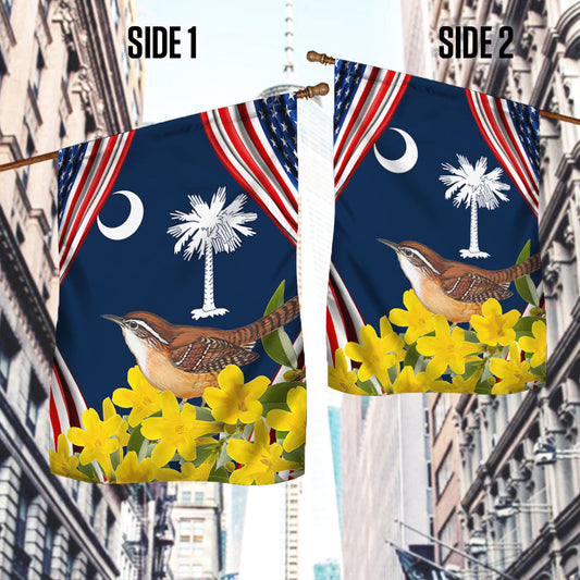 South Carolina With Carolina Wren Bird and Yellow Jessamine Flower, South Carolina Flag TPT812F