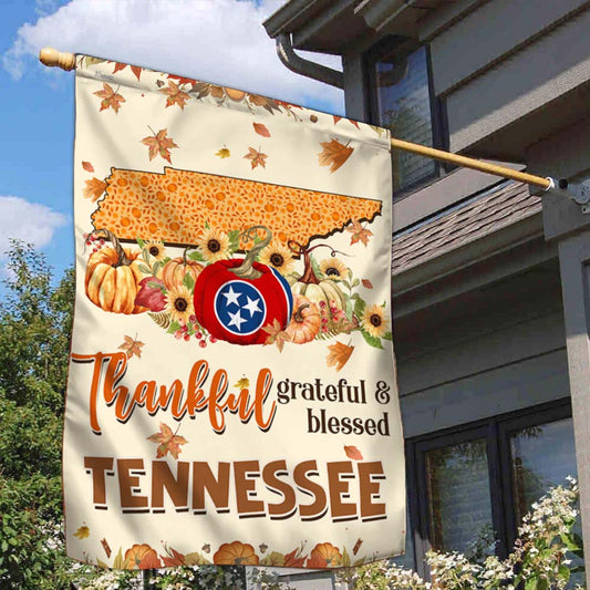 Thanksgiving Tennessee Flag Thankful Grateful And Blessed Halloween Pumpkin Fall Flag TPT1130Fv1