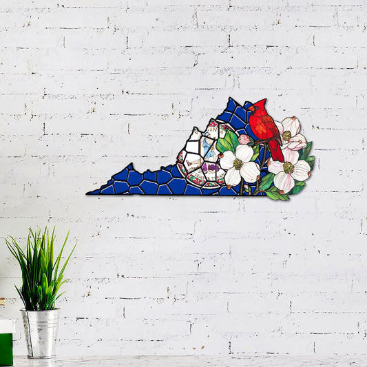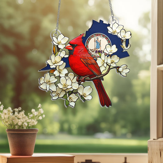 Virginia Cardinal & Flowering Dogwood Suncatcher - Hanging Sign Gift for State Pride & Nature Enthusiasts VTM1018NGT