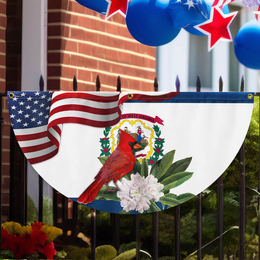 West Virginia Cardinal and Rhododendron Flower Non-Pleated Fan Flag MLN3359FL
