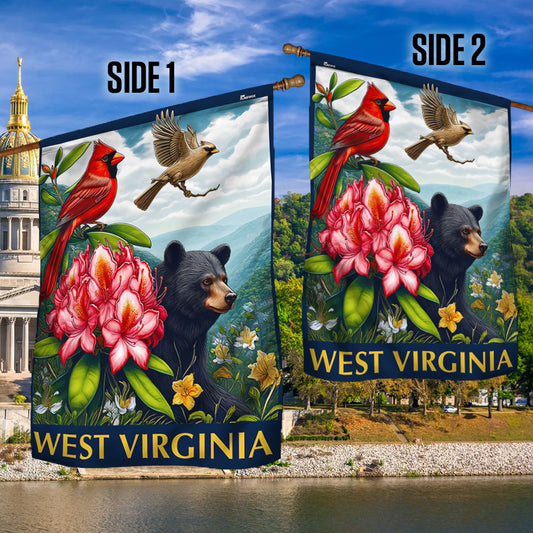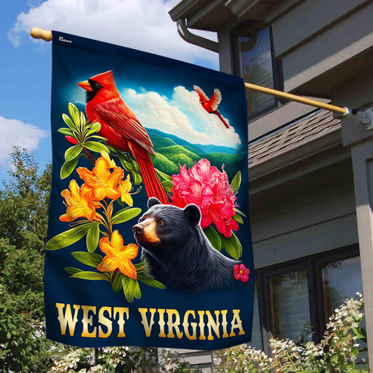 West Virginia Black Bear and Cardinal and Rhododendron Flower Flag MLN2996F