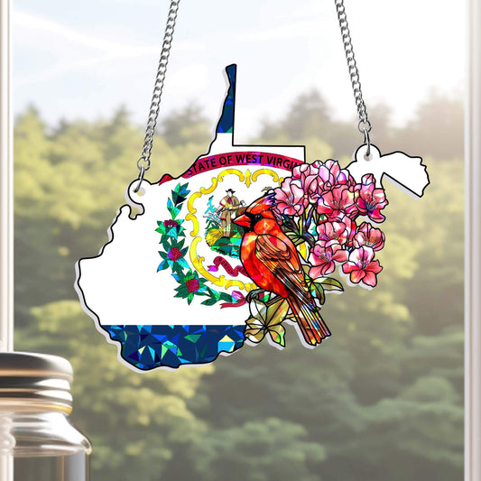 West Virginia Cardinal and Rhododendron Flower Hologram Window Hanging TPT2760TNB