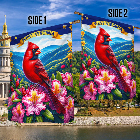 West Virginia Cardinal and Rhododendron Flower Flag Home Is Where The Heart Is West Virginia Flag MLN1403F