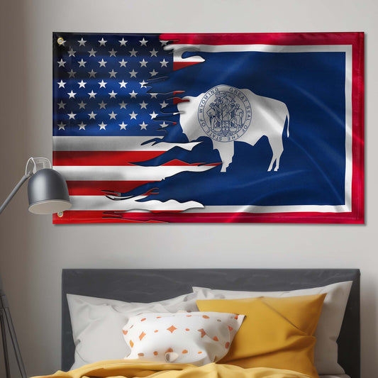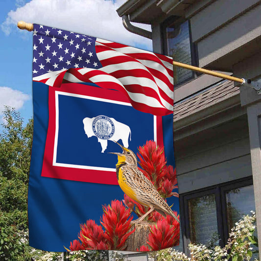Wyoming State with Meadowlark Bird and Indian Paintbrush Flower American Flag TPT775Fv10