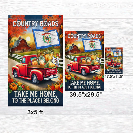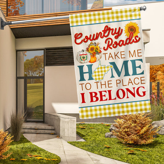 West Virginia Thanksgiving Fall Flag Country Roads Take Me Home To The Place I Belong Flag MLN3799F
