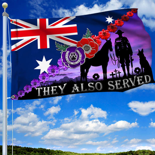 Anzac Day, Remembrance Day Red Purple Poppy They Also Served Grommet Flag TQN2698GF