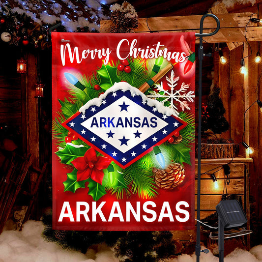 Arkansas Flag Christmas Solar LED Garden Flag TQN4193SF