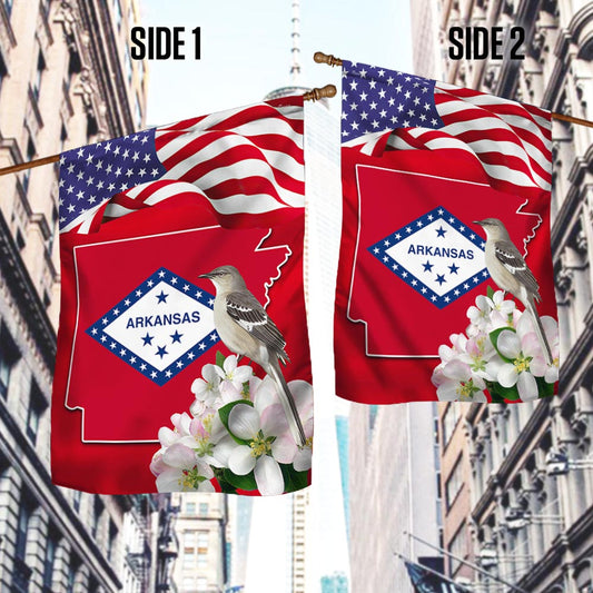 Arkansas State Apple Blossom Flower and Mockingbird Flag MLN1141Fv16