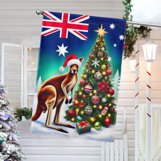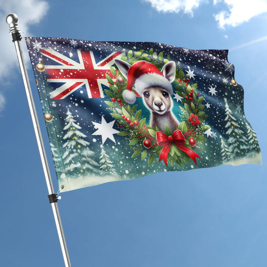 Australian Kangaroo Christmas Winter Holidays Australia Grommet Flag TQN4216GF