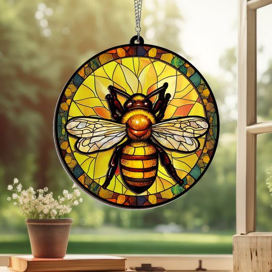 Bee Hippie 2 Layered Hanging Suncatcher MLN3847WH
