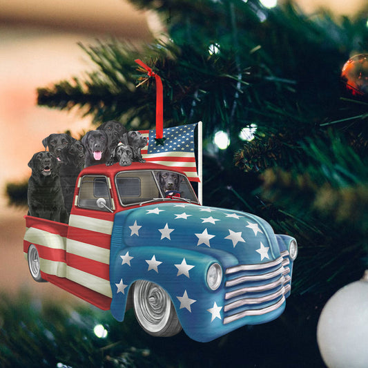 Black Labrador Retrievers In American Flag Truck Ornament QNK1026O