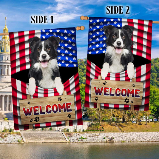 Border Collie Dog Welcome 4th of july American Flag TQN1135Fv6