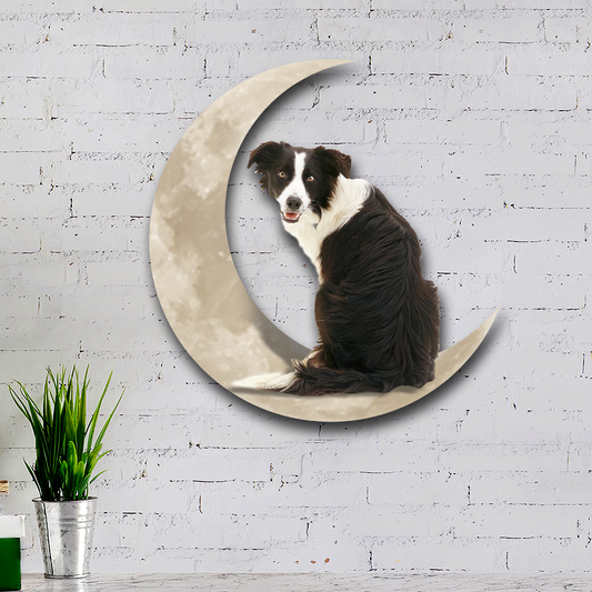 Border Collie Dog On The Moon Hanging Metal Sign QNK879MSv11a