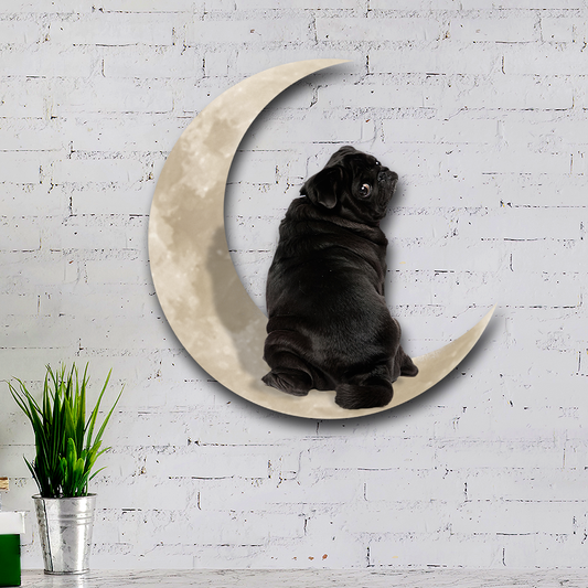 Black Pug Dog On the Moon Hanging Metal Sign QNK879MSv6a