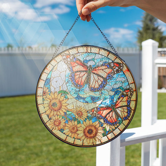 Butterfly and Sunflower Stained Glass Suncatcher MLN3678SS