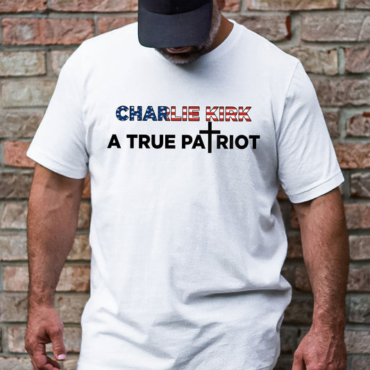 Charlie Kirk Patriot T-Shirt | Christian Cross American Flag Religious Tee
