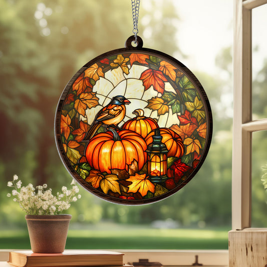 Charming Pumpkin, Fall Pumpkin Lantern Decor 2 Layered Hanging Suncatcher HTT359WH