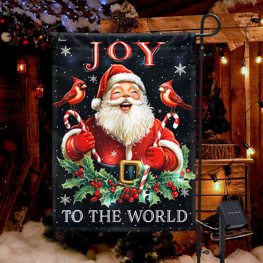 Cheerful Santa Claus Joy To The World Christmas Solar LED Garden Flag TQN4147SF