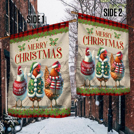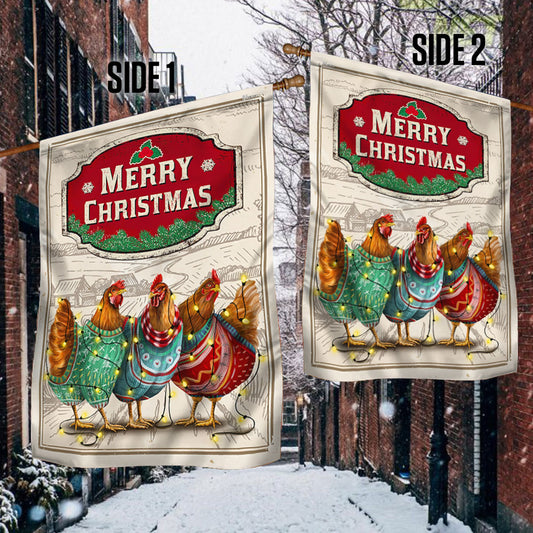 Chicken Christmas Flag Three Hens With Light Vintage Flag TQN662F