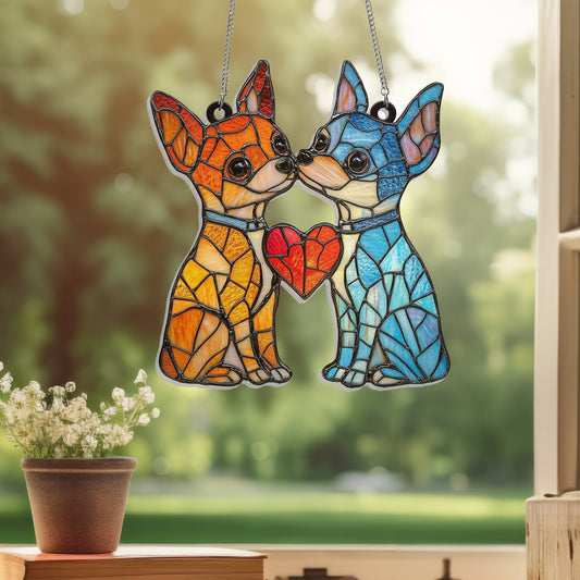 Chihuahua Couple Suncatcher Window Hanging Sign MLN4697AS