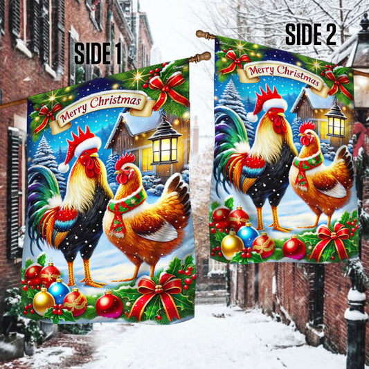 Chicken Christmas Rooster And Hen Farm Flag TQN3778F