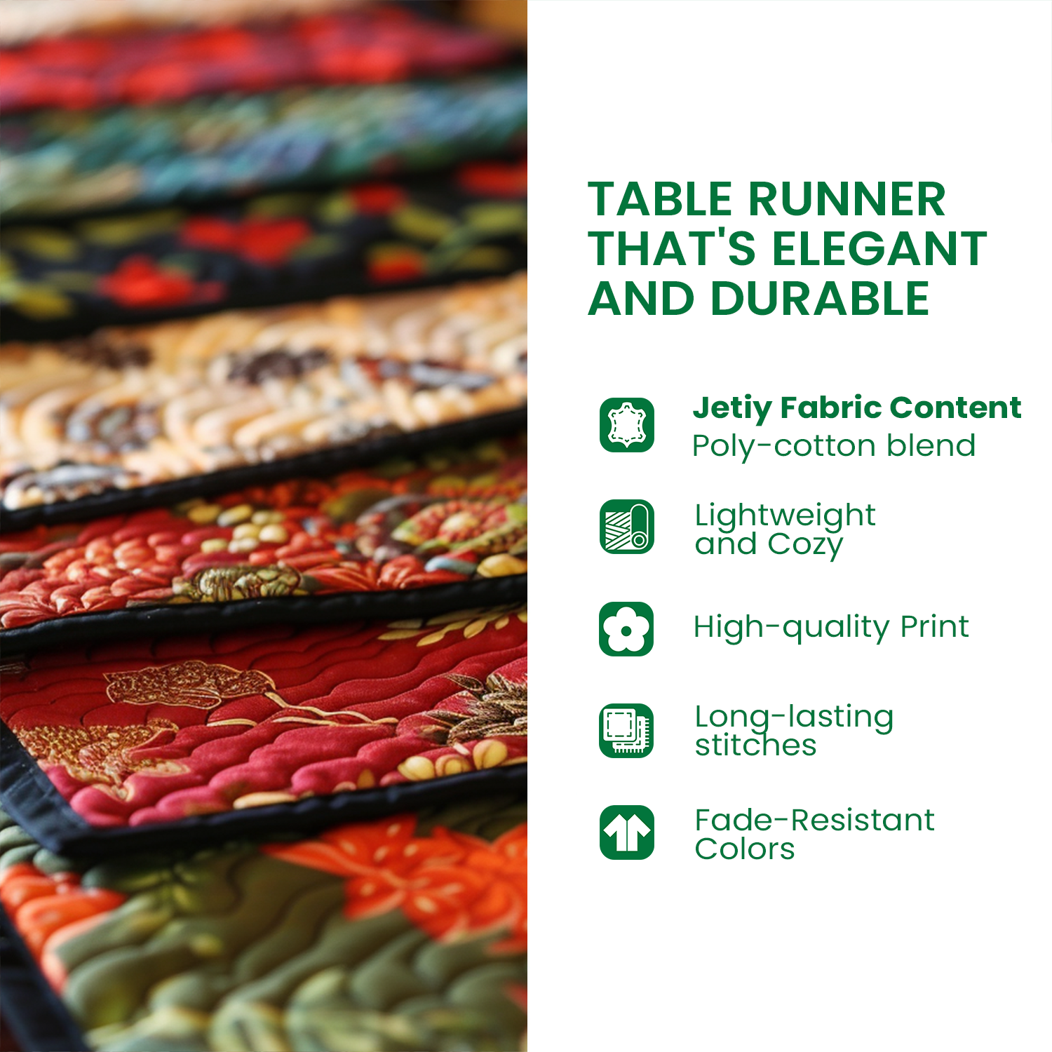 All products are made to order and printed to the best standards available. Elevate your table setting with our enchanting Quilted Table Runner, where style meets practicality!